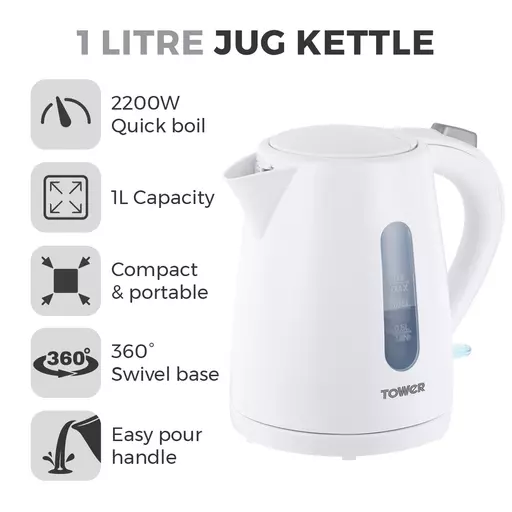 1 Litre Jug Kettle with 360 Degree Swivel Base, 2200W