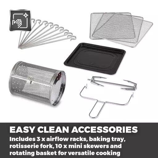 With spit and handle accessories to cook a whole chicken rotisserie style in under 1 hour – rotated on a spit for perfect cooking results