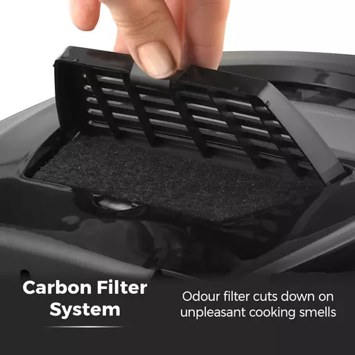 Built-in filter prevents cooking smells being released from food as you fry, keeping your kitchen odour-free