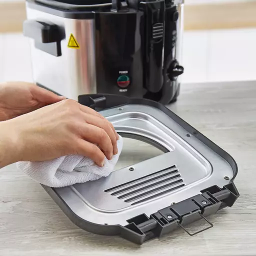 The non-stick enamel cooking pot & removable parts require a simple wipe clean to remove grease and food residue, for an even easier clean up after cooking. A built-in carbon filter ensures unpleasant cooking smells aren’t left lingering around, keeping your kitchen fresh and odour-free after frying.