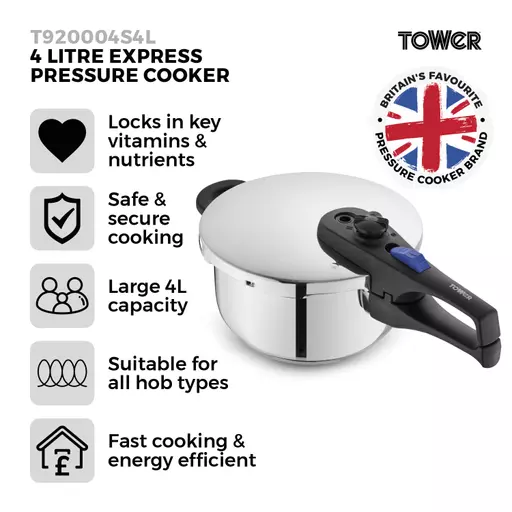 Enjoy hearty and healthy stews, roasts and soups in less time with the Tower Express pressure cooker
