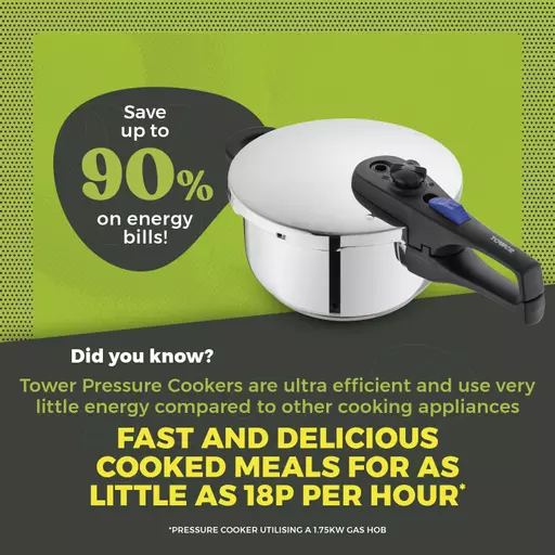 Cooking hearty and healthy dinners requires little time or energy with the Tower Express 6L pressure cooker. Using the pressure cooker, your food retains more of its nutrients, vitamins and minerals when compared to standard cooking methods, producing significantly healthier meals for the family to enjoy. It uses a bonded steel base to provide rapid results while ensuring heat is distributed evenly to cook vegetables full of flavour and meat which maintains its tender, succulent texture. The energy-efficient appliance cooks food up to 70% faster than conventional cooking techniques to save time and reduce running costs.