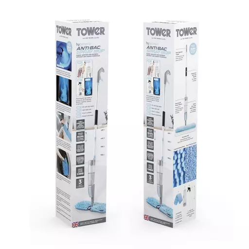 An easy squeeze trigger allows you to spray as you go, allowing you to continue cleaning without stopping, which is ideal for larger cleaning tasks. The water bottle also detaches and doubles as a handheld spray bottle for smaller areas, such as the countertop or windowsills. Â Microfibre pads clean a range of surfaces, including tiles, laminate and wooden floors, removing the excess dirt and grime with ease. Comes with a 3 year extendible Tower Guarantee.
