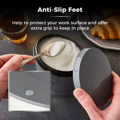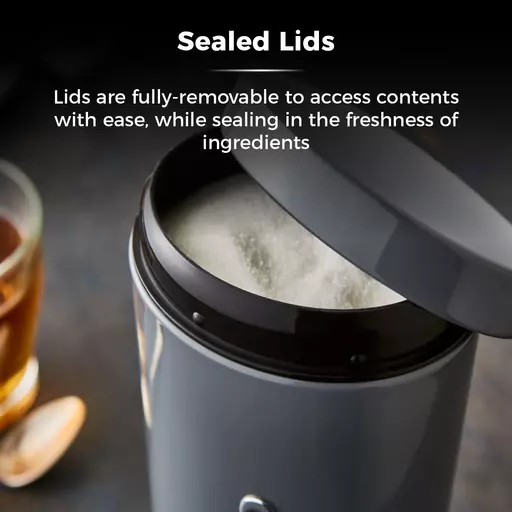 The accessible pull lids can easily be removed to empty, refill and access contents as needed, complete with an airtight lid to seal in the freshness for longer. Built from durable steel with a chrome effect base ring, these containers are designed to last and can be easily wiped clean to protect the finish. Anti-slip feet keep the canisters in place and prevent scratching against your surfaces.