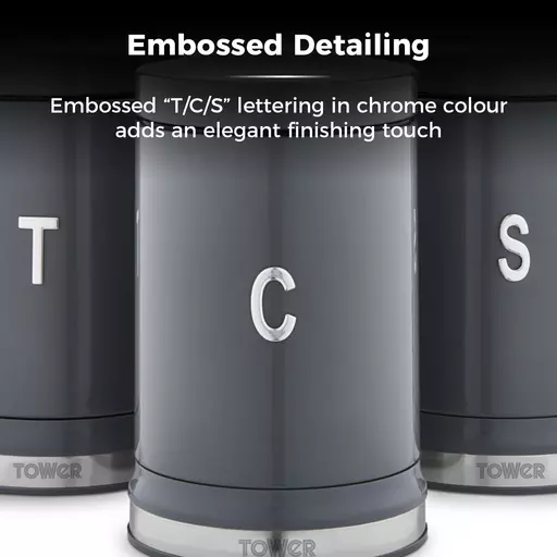 Chrome effect T/C/SÂ lettering is etched into each canister, keeping your kitchen neatly organised with indication to the contents inside