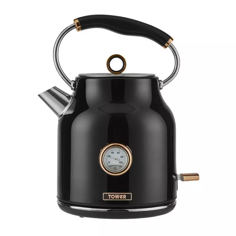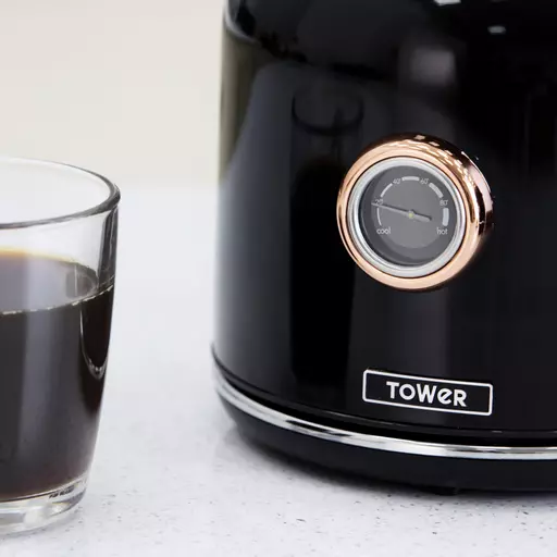 Serve up a tasty brew with this Tower 3.kW black and rose gold cordless kettle. The 1.7L capacity lets you make up to 7 cups of tea or coffee from a single boil, perfect for playing host to family and friends. With rapid boil technology, the kettle boils in minutes so you can enjoy your beverage in no time, while the quiet boil function ensures minimal noise disruption.