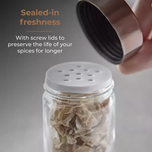 Each jar comes topped with a rose gold screw lid to seal in the freshness of your spices for longer