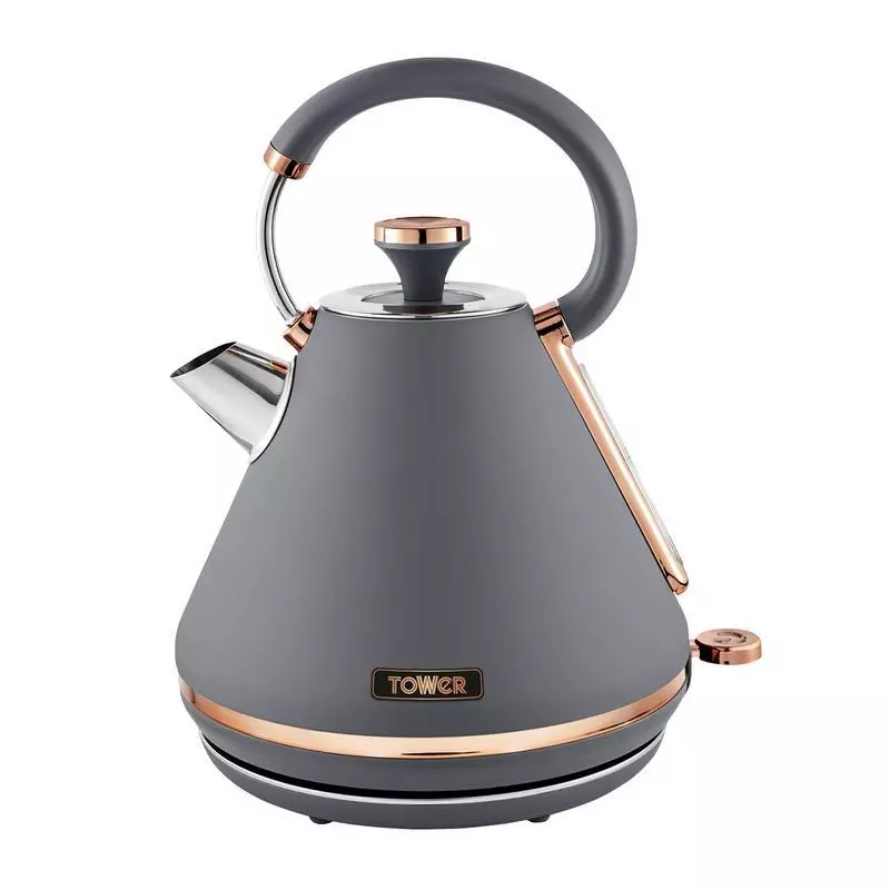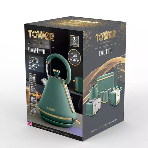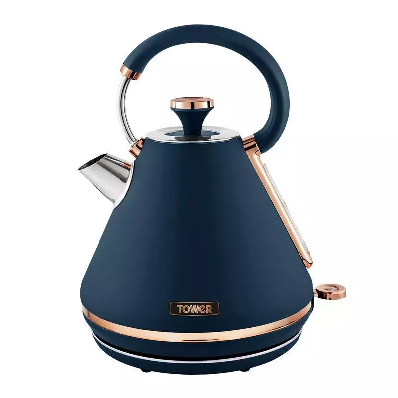 Add contemporary style to your kitchen with this elegant Cavaletto Pyramid Kettle from Tower. It features a matte black finish with lustrous rose gold accents, making this kettle an eye-catching addition to any countertop. Full of modern functionality, it’s powered by rapid boil technology to reduce your wait for a delicious hot drink, boiling 1 cup in less than 45 seconds. A large 1.7L capacity lets you make up to 7 drinks from a single fill, ideal for families and busy households alike.