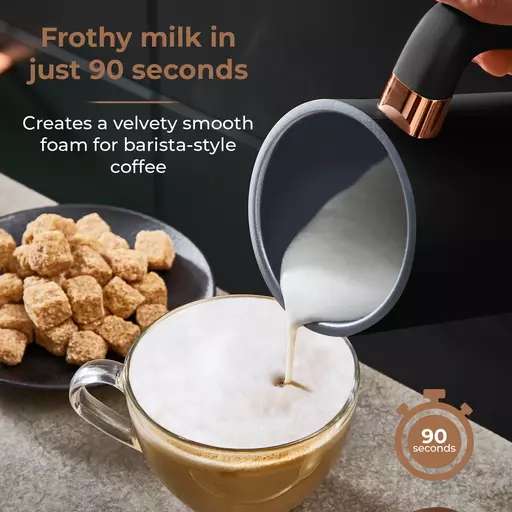 Powerful 500W milk frother works in just 90 seconds, so you can add velvety smooth foam to your homemade barista-style coffee even quicker