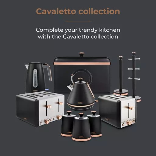 This smart appliance switches off after its crafted your milk into a smooth and consistent texture, ready for you to enjoy a delicious coffee with added peace of mind. Its sleek compact design means you can create delicious coffee at home without any restrictions. This trendy appliance is coated in black with rose gold accents, perfectly styled with other essentials in the Cavaletto collection to complete your kitchen.