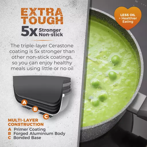 | Forged aluminium body for enhanced durability | Superior Cerastone coated non-stick interior |
