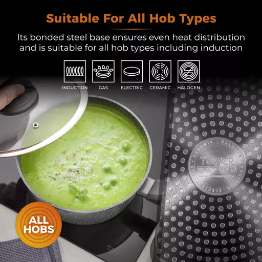 | Suitable for all hob types including induction | Do not use in oven or under the grill |