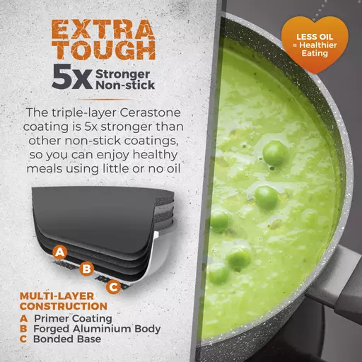 | Forged aluminium body for enhanced durability | Superior Cerastone coated non-stick interior |