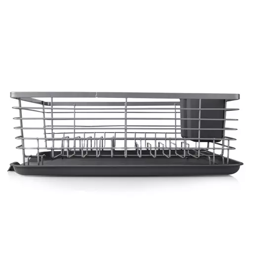 Make the most of your draining space by combining both quality and style with this compact dish rack. Formed from a durable stainless steel frame, this drainer features a sleek chrome cover coating to prevent against any cause of unwanted scratching and corrosion. Its compact design does not compromise on drying space, accommodating up to 9 plates at any one time, with a separate space for glasses and mugs to be drained. The draining tray’s raised ribs keep your items elevated during drying, so excess water can be drained away easily. Designed for ease of unloading your items as well as cleaning, both the draining tray and cutlery holder are fully detachable for the added benefit of a compact and tidy storage.