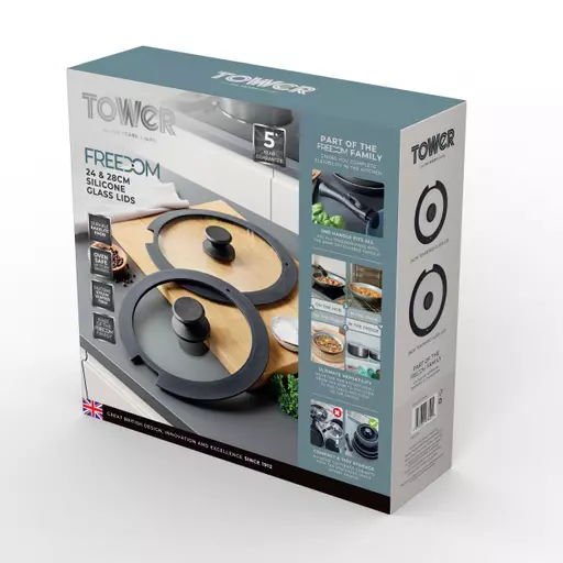 2 piece set that includes 24/28cm glass lids for Tower Freedom range of pans