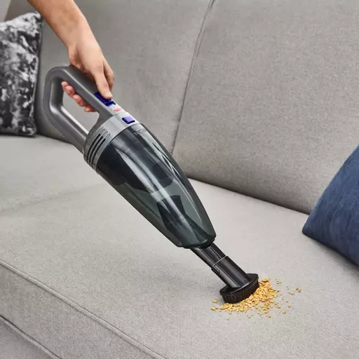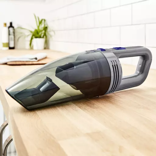 The 50W motor is housed within a lightweight and compact handheld vacuum cleaner to nimbly reach between small and confined spaces around your home or within the car without restriction. The strong suction power provides a deep and thorough clean that easily absorbs both wet and dry spillages such as dust, food crumbs, milk and a range of other spilled liquids for a fast and efficient clean up. Collected debris filter through to the dust compartment and presents an easy removal directly into the bin, while the crevice nozzle and round brush head attachments help to capture all particles between sofa seams, blind slats and car vents. A complete charge of this portable cordless cleaner can provide up to a 20 minute cleaning performance to leave your home free from dust and dirt for a comfortable home environment.