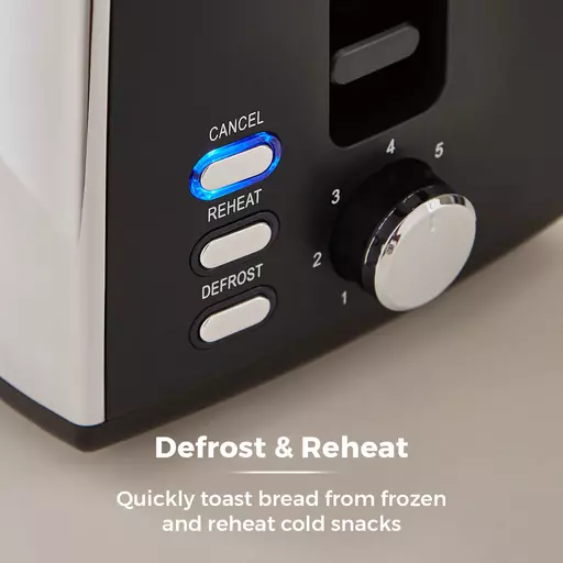 Defrost and reheat functions let you toast bread straight from frozen, for a speedy breakfast solution or to quickly warm up cold snacks