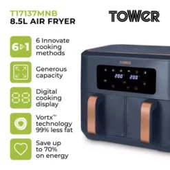 Vortx Dual Basket Air Fryer With 6 Pre-Set Functions 7.6 Litre