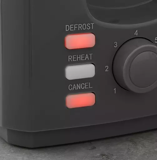 | Defrost / reheat and cancel buttons for maximum versatility | Removable crumb tray for easy cleaning and maintenance |