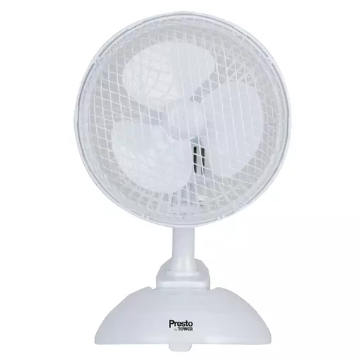 Create a cool breeze around your office desk or bedside table with the Presto by Tower 2-in-1 desk fan. The table top desk fan doubles as a clip fan, allowing you to easily attach it to a variety of surfaces using its ultra-secure clip to give you efficient cooling wherever you need it. Adjust the intensity of the airflow with high or low speed settings offering the optimal amount of comfort. Its compact design is suitable for use in homes, caravans, conservatories and offices, requiring little surface space with its clip functionality. Complete with an extra-long power cable, anti-slip feet and an anti-corrosive safety guard, the 2-in-1 desk fan provides the ideal cooling solution to beat the heat this summer.