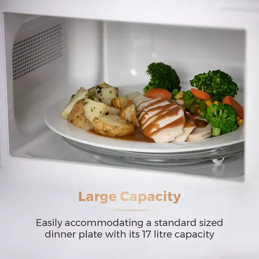 With its spacious 17-litre capacity, this microwave can easily accommodate a standard sized dinner plate. Cooking larger portions of food to cater for the whole family is now easier and quicker than conventional cooking