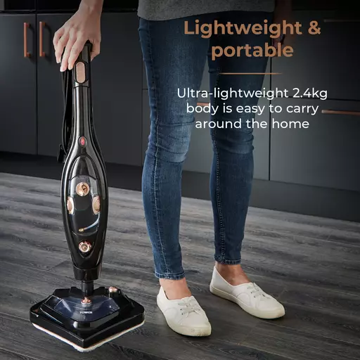 It can be converted into a versatile handheld steam cleaner to tackle tiles, carpets, hard floors, hobs, ovens, windows and upholstery. Equipped with 10 accessories and tools including a carpet glider to refresh your carpets, this multi-functional mop is perfect for performing an exceptional all-round clean of your home. It???s ultra-lightweight and easy to carry between rooms without any heavy lifting required. Complete with foldable handle and cord storage, it can be neatly tidied away after use without taking up too much space in your cleaning cupboard.