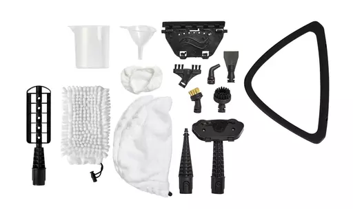 Tower’s multi-functional steam mop uses superior steam-powered performance to deep clean your carpets and leave hard floors with a polished look. Its lightweight design can be converted to a compact handheld steamer for a full cleanse around tight areas and restricted spaces in every room. The adjustable steam control is ready for use within 15 seconds, generating up to 15 minutes of continuous steam from a complete fill of the 400ml transparent water tank. The triangle-shaped mop head lets you steam clean every nook and cranny around your home, fitting in between room corners and close to skirting boards to keep every inch looking spotless. Equipped with 16 floorcare accessories, this steam mop provides a well-rounded tool for cleaning the whole house, including 2 microfibre cloths, a carpet glide, brush tool, small and large brush, blinder, coral cloth, scraper, steamer cloth, funnel and cup, squeegee attachment, angled nozzle and an accessories adaptor.