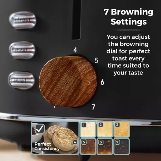 With a choice of 7 browning levels, you can adjust the browning dial for perfect toast every time suited to your taste.