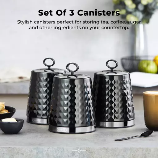 | Set of 3 round kitchen storage canisters | Ideal for storing coffee suger and tea |