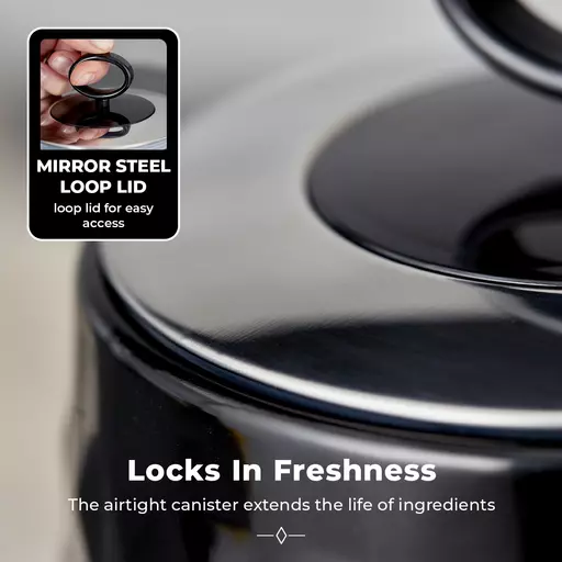 The intuitive designed mirrored loop lid makes it easy to access the ingredients, whilst the non-slip feet ensure the canisters do not scratch or cause damage to your worktops, keeping your kitchen looking neatÂ