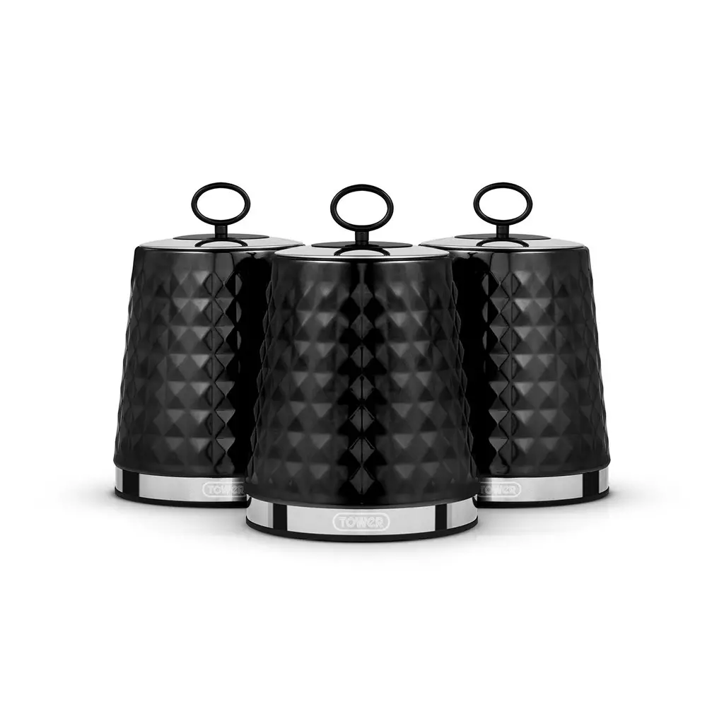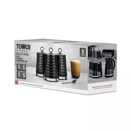 Display your tea, coffee, sugar and other ingredients in these modern designed set of 3 canisters from Tower’s Solitaire collection. The stainless-steel design coated in a sleek colour makes these highly durable and stylish for added aesthetic in the kitchen. Providing a spacious 1.3L capacity, you can load them up to the brim of your favourite ingredients, so there’s no need to constantly refill them, with a loop lid for easy access to the contents. Made from robust stainless steel and coated in a sleek white colour, the canisters are built to last and are easy to clean, requiring a swift wipe to maintain the quality finish. The non-slip feet prevent any damage or scratching to your work surfaces. Â