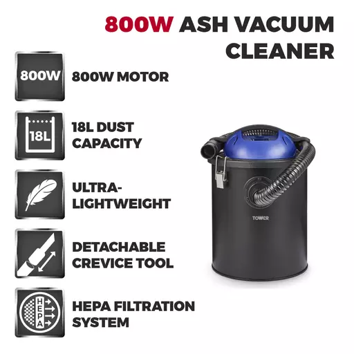 Make easy work of removing ash from your indoor or outdoor fires with this Tower ash vacuum cleaner. The powerful 800W motor offers a strong suction power of KPA17, which effortlessly sucks up hot ash below 40 degrees C and other debris from fires, BBQs, fire pits and wood burners. An advanced HEPA filtration system locks in the smaller dust particles, providing a more hygienic clean-up for those who suffer with allergies.