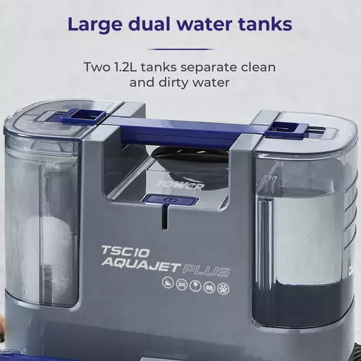 Expertly tackle stubborn dirt and stains with the multi-purpose Tower TSC10 AQUAJETPLUS Spot Cleaner fitted with a powerful 400W motor. Designed with two 1.2 litre water tanks that separate clean and dirty water, so that you’re nurturing your carpet and floors with fresh clean water every time. Its portable design ensures you can effortlessly carry your carpet cleaner around the home, making housework less of a chore. This multi-purpose spot cleaner packs a powerful punch with 400W suction, to expertly tackle stubborn dirt and stains across carpet, hard floors, stairs, upholstery and car interiors.
