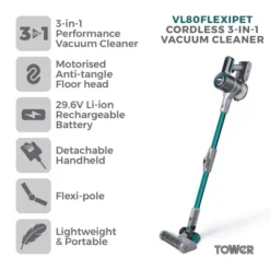 The 6 metre cord length offers extra reach, leaving you free to vacuum around a number of rooms without the need to constantly change to other wall sockets. Complete with a 2-in-1 crevice tool and floor brush, you can tackle cleaning in harder to reach areas without hassle, while the additional pet turbo brush removes embedded pet hair for a deeper clean in your home. This vacuum comes with Tower’s standard 1 year warranty, with an additional 2 years when you register the product online. That’s a total of 3 years peace of mind in the event of fault.