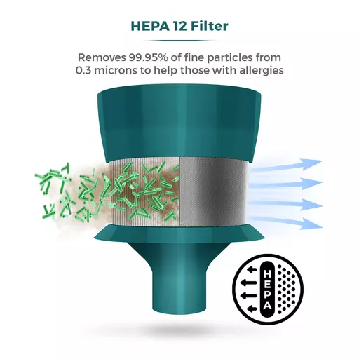 Anti-allergy HEPA filter removes 99.95% of fine particles from 0.3 microns, making it ideal for allergy sufferersÂ