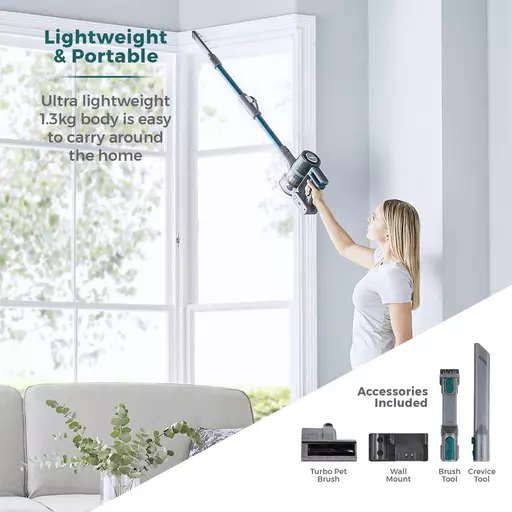 Ultra lightweight body is easy to carry and move from room to room, for cleaning up high and reach low down and under furnitureÂ