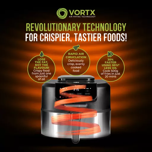 Vortx technology rapidly circulates hot air around food, cooking up to 30% faster than a conventional oven. Vortx also cooks food with a delicious crispy texture and because little or no oil is required, it’s much healthier, too! Lose the fat not the flavour.