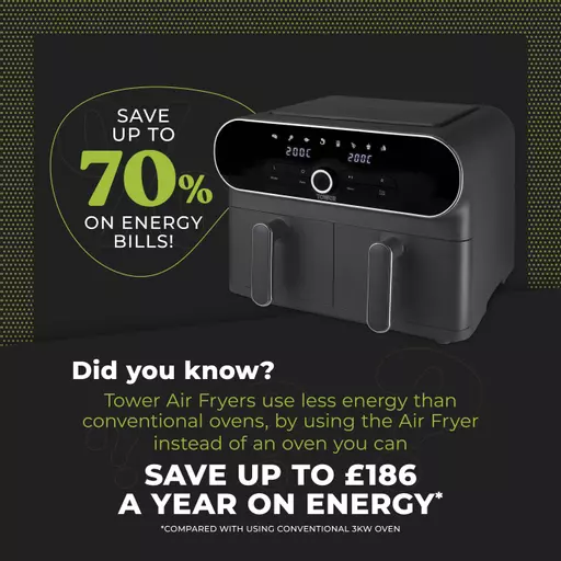Exclusive to Tower Air Fryers, Vortx technology rapidly circulates hot air around food, cooking up to 30% faster than a conventional oven.  Vortx also cooks food with a delicious crispy texture and because little or no oil is required, it’s much healthier too! Lose the fat not the flavour with Vortx Air Frying Technology
