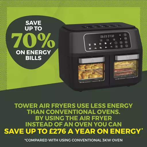 Slash the amount of electricity by up to 50% simply by using your Air Fryer instead of your oven.
