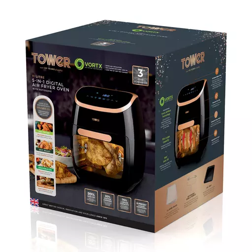 Cooking food 30% faster, Tower Air Fryers use less power than conventional ovens. Save up to 50% on your energy by simply switching to Air Fryer cooking